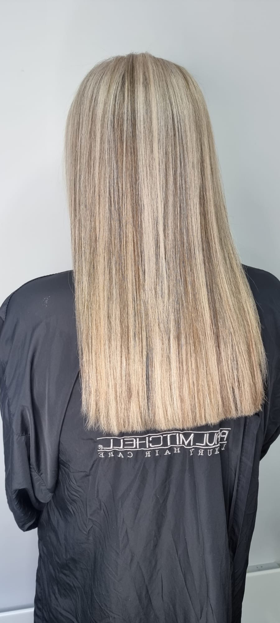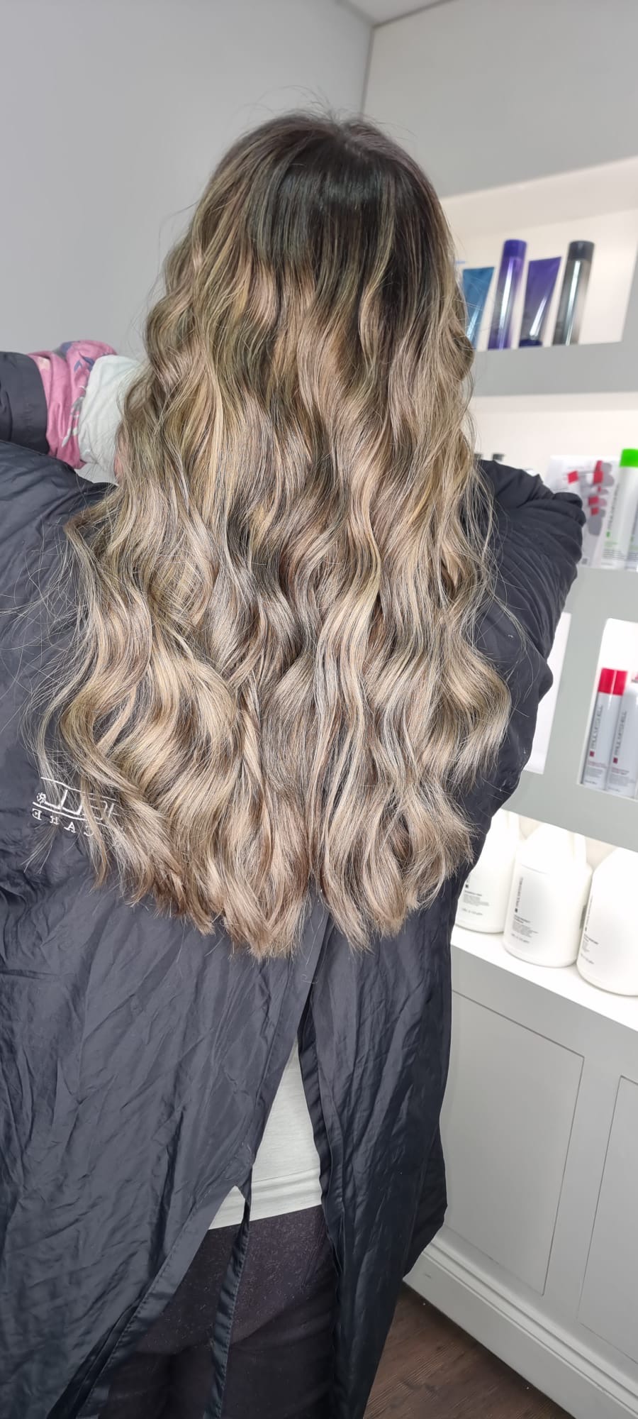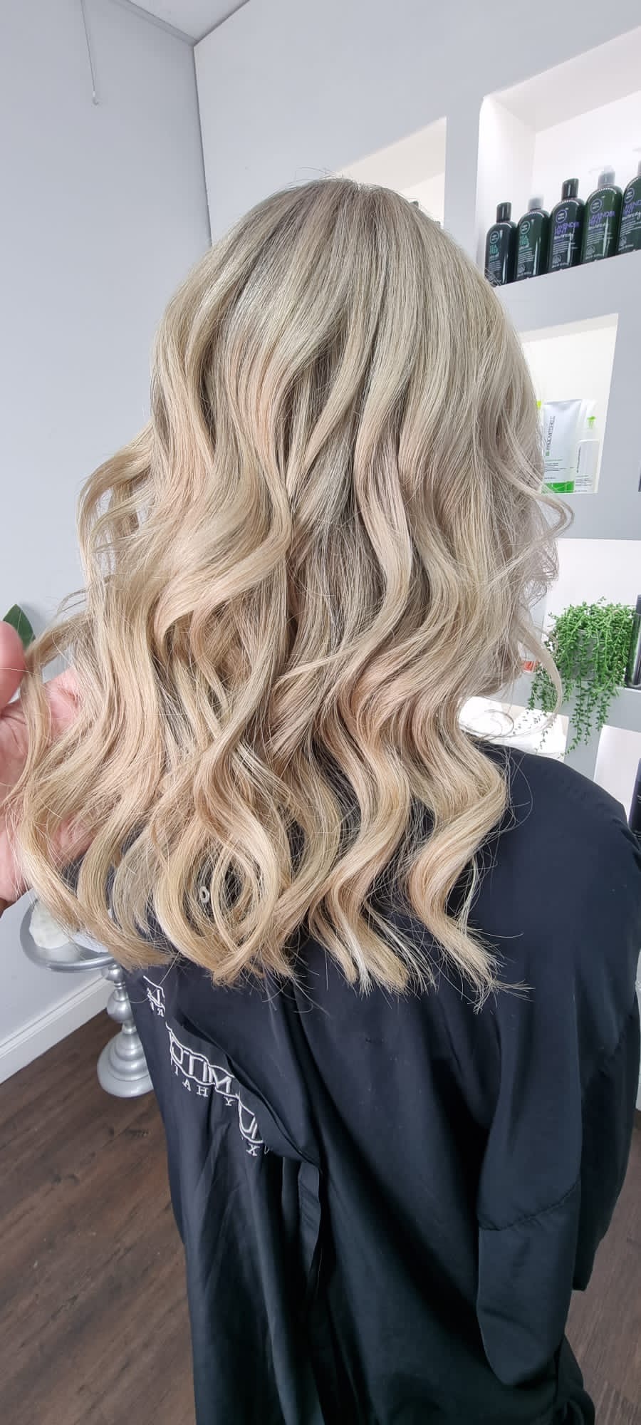 Natural-looking, sun-kissed hair with a seamless blend. This is an all inclusive service. As many colours as wanted, olaplex in all colour, and a full cut and blowdry